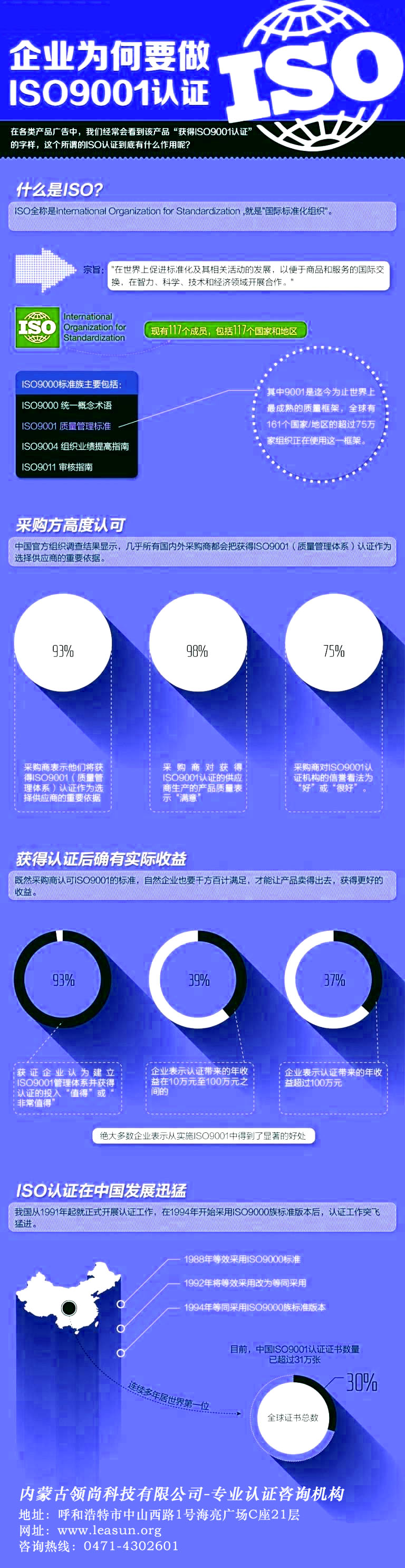 內(nèi)蒙古領(lǐng)尚科技有限公司是從事體系認證咨詢、產(chǎn)品認證咨詢、企業(yè)管理咨詢的專業(yè)咨詢機構(gòu),為各行業(yè)企業(yè)提供多角度全方位的認證咨詢和管理咨詢服務,得到客戶的一致認可與好評。內(nèi)蒙古領(lǐng)尚科技有限公司是經(jīng)國家合法批準開展ISO9001質(zhì)量管理體系認證、ISO14001環(huán)境管理體系認證、OHSAS18001職業(yè)健康安全管理體系認證、ISO22000食品安全管理體系認證、HACCP食品安全管理體系認證、CCC強制產(chǎn)品認證、有機產(chǎn)品認證等多項國際認證咨詢服務的專業(yè)機構(gòu)。